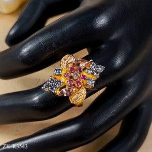 Handcrafted 22k gold plated ring studded with pink zirconia, smoky and coffee stones.