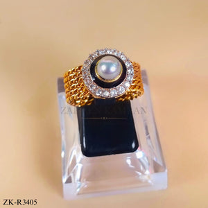 Handcrafted 22k gold plated ring studded with zircons and pearl.