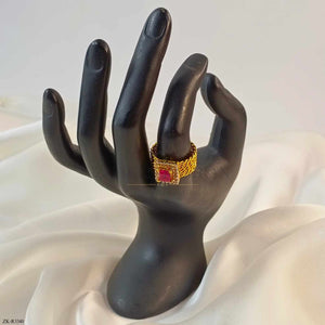 Handcrafted 22k gold plated ring studded with ruby.Note "Actual product colour may vary slightly from the image"