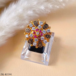 Handcrafted 22k gold plated ring studded with ruby and zircons.