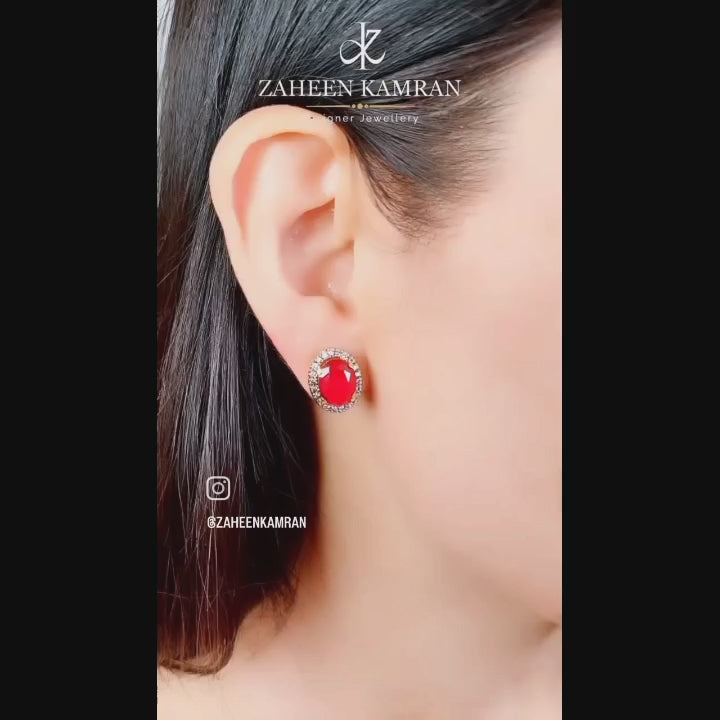 Handcrafted 925 pure silver earrings studded with garnet and zircons.