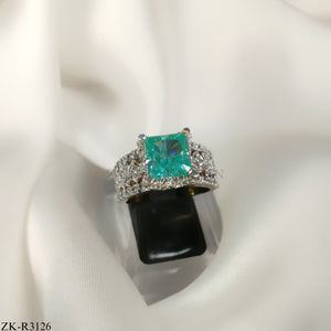 Handcrafted silver plated ring adorned with zircons and ocean stone.