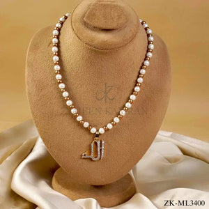 Handcrafted 22k gold plated mala studded with zircons, golden and white pearls.
