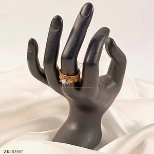 Handcrafted 22k gold plated ring studded with amethyst and pearl.