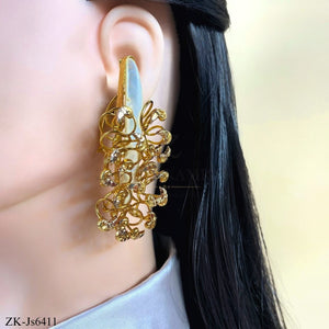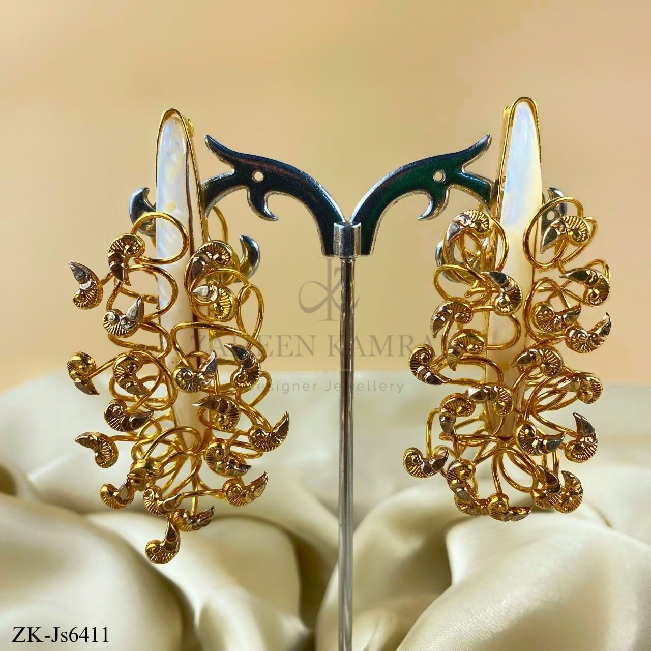 Handcrafted 22k gold plated pendant alongside earrings studded with white opal.