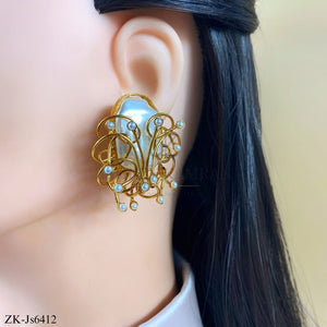 Handcrafted 22k gold plated pendant alongside earrings studded with white opal.