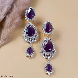 Handcrafted silver plated earrings studded with amethyst and zircons.
