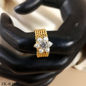 Handcrafted 22k gold plated ring studded with zircon and pearls.