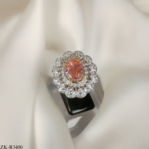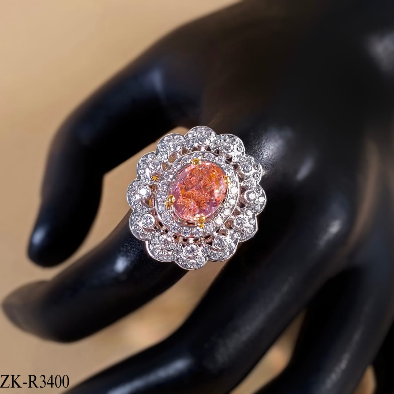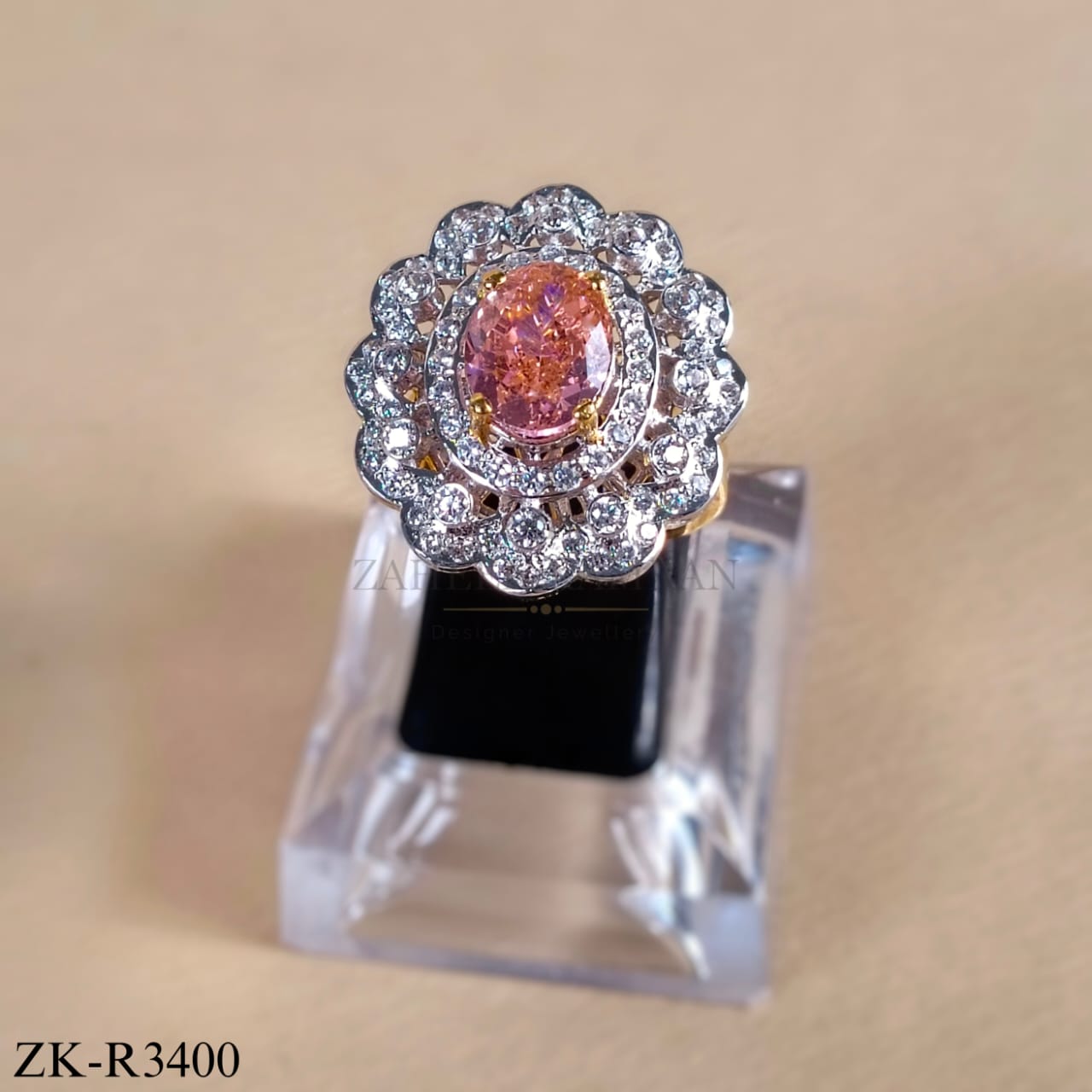 Handcrafted 22k gold plated ring studded with pink stones and zircons.