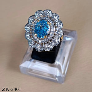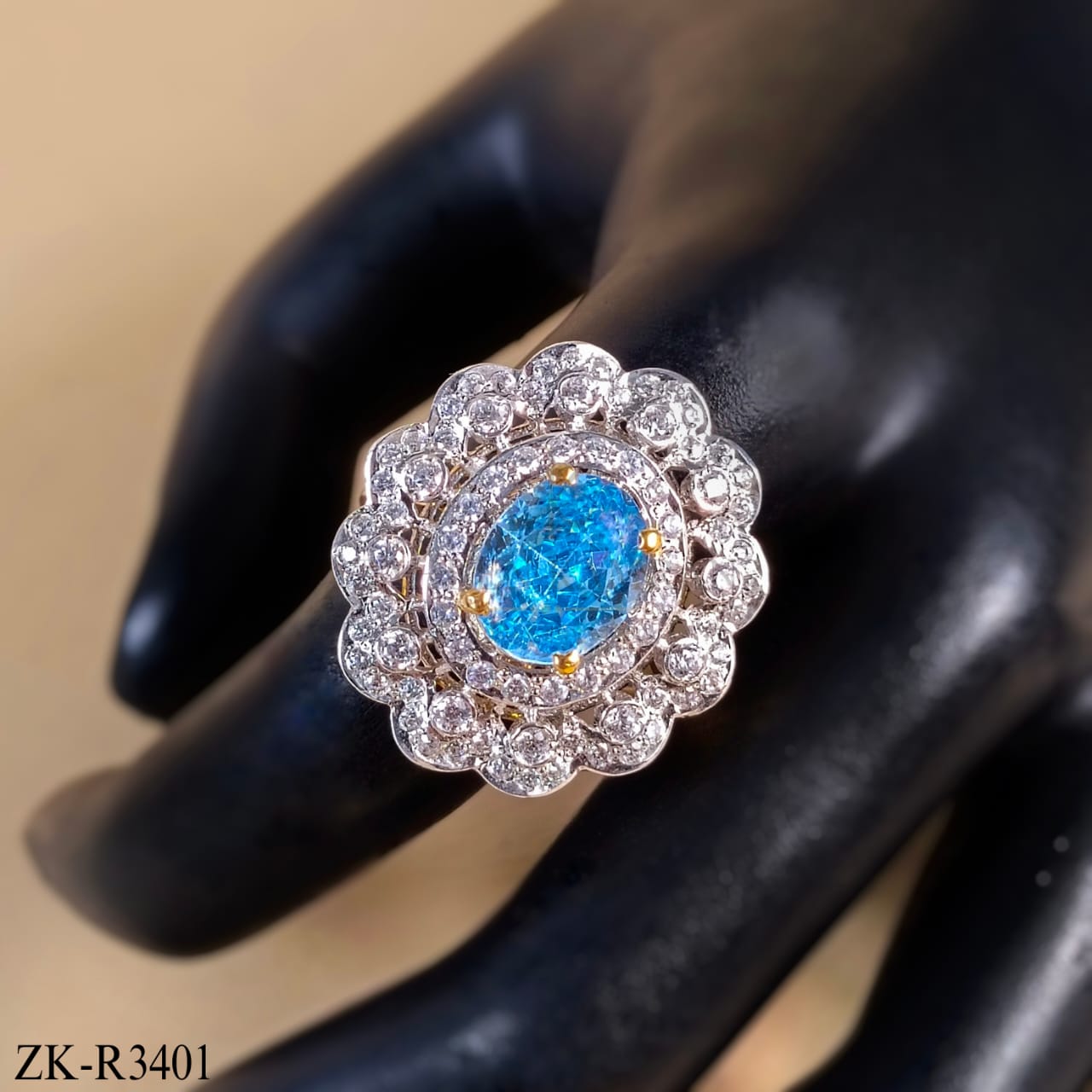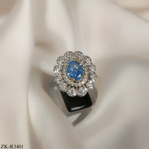 Handcrafted 22k gold plated ring studded with sapphire and zircons.