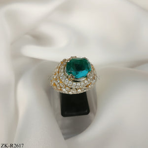 Handcrafted 925k pure silver plated ring adorned with emerald and zircons.