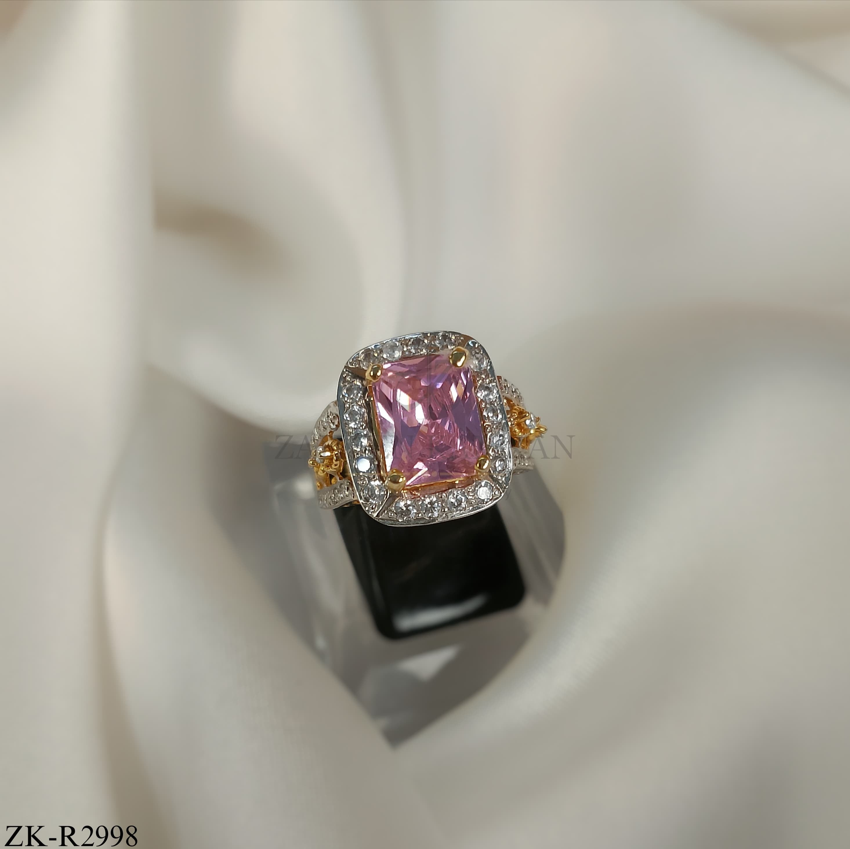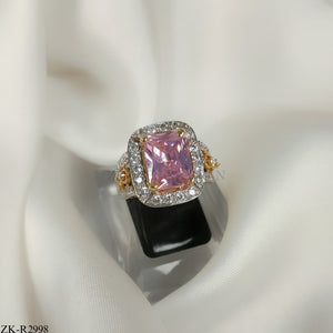 Handcrafted 22k gold plated ring studded with zircons and pink stones.