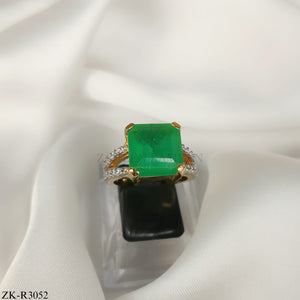 Handcrafted 22k gold plated ring studded with emerald and zircons