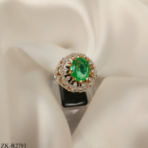 Handcrafted 925 pure plated ring studded with emerald and zircons.