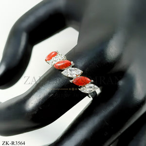 Handcrafted silver plated ring studded with garnet and sheesh.