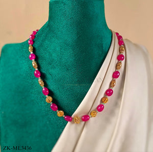 Handcrafted 22k gold plated mala studded with ruby and emerald.