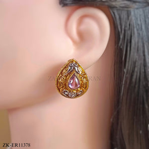 Handcrafted 22k gold plated earrings studded with amethyst.