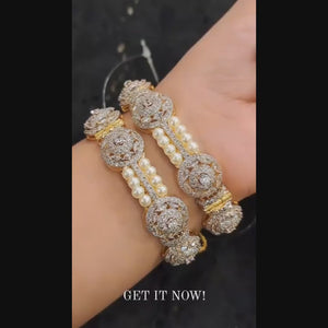 Handcrafted 22k gold plated bangles studded with pearls and zircons.