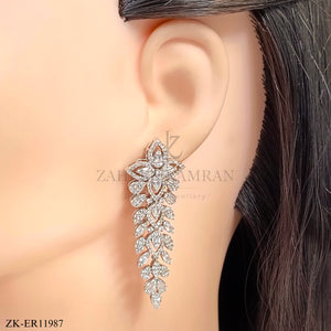 Handcrafted silver plated earrings studded with cut stones and zircons.