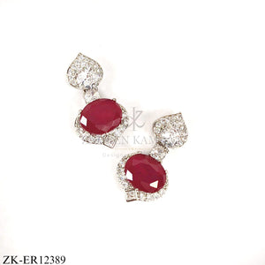 Elegant silver earrings featuring two oval ruby surrounded by zircons.