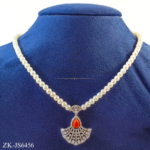 Handcrafted silver plated necklace alongside earrings studded with citrine, zircons and pearls.