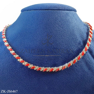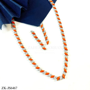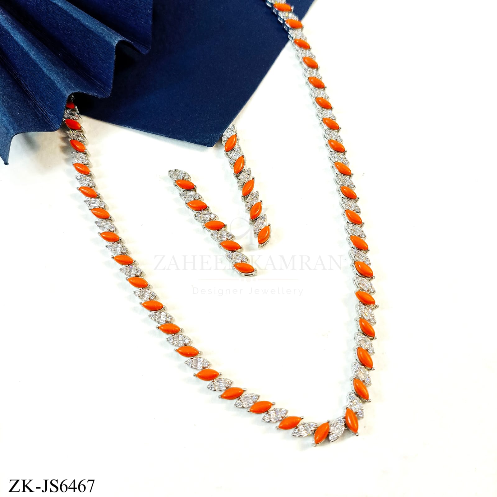 Handcrafted silver plated necklace alongside earrings studded with citrine and zircons.
