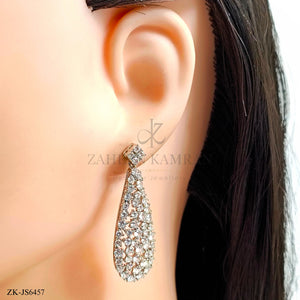 Handcrafted silver plated necklace alongside earrings studded with zircons.