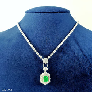 Handcrafted silver plated pendant studded with emerald, sheesh and zircons.