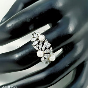 Handcrafted silver plated ring studded with sheesh and pearls.