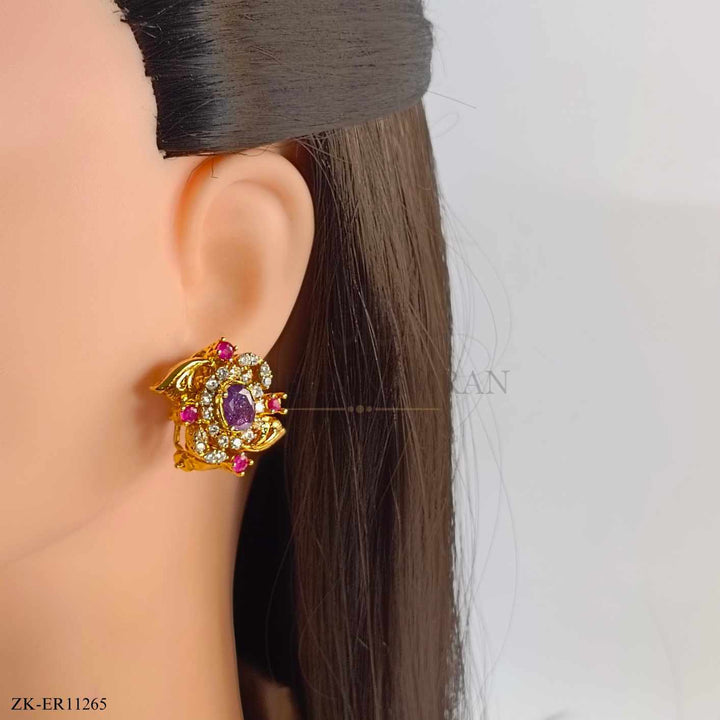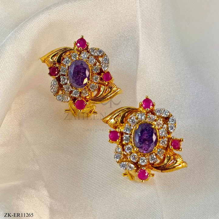 Handcrafted 22k gold plated earrings studded with ruby, amethyst and zircons.