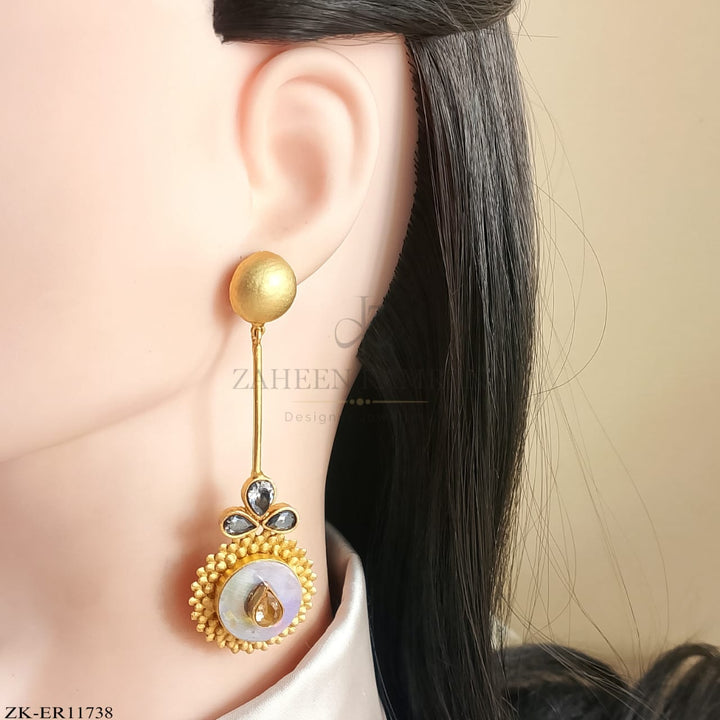 Handcrafted 22k gold plated earrings studded with smoky stones.