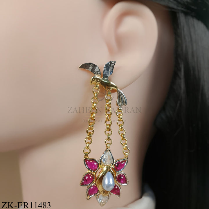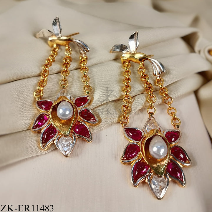 Handcrafted 22k gold plated earrings adorned with ruby, Sheesh and pearls.