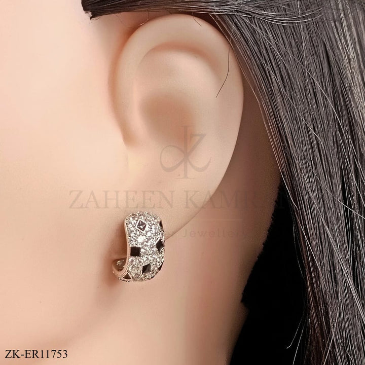 Handcrafted silver plated earrings studded with black onyx and zircons.