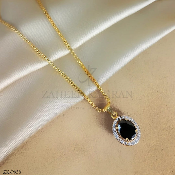 Handcrafted 22k gold plated pendant studded with black onyx and zircons.