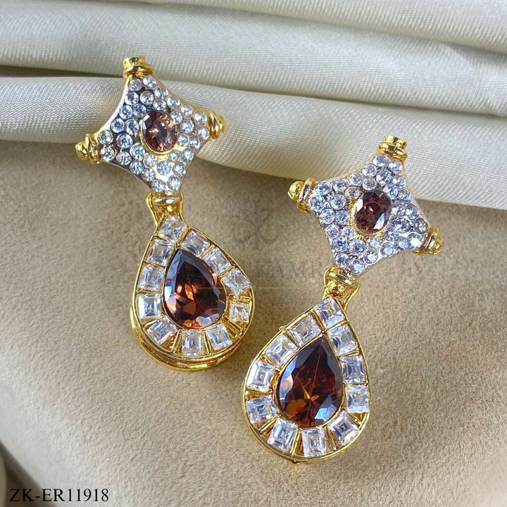 Handcrafted 22k gold plated earrings studded with coffee stones, zircons and Sheesh.