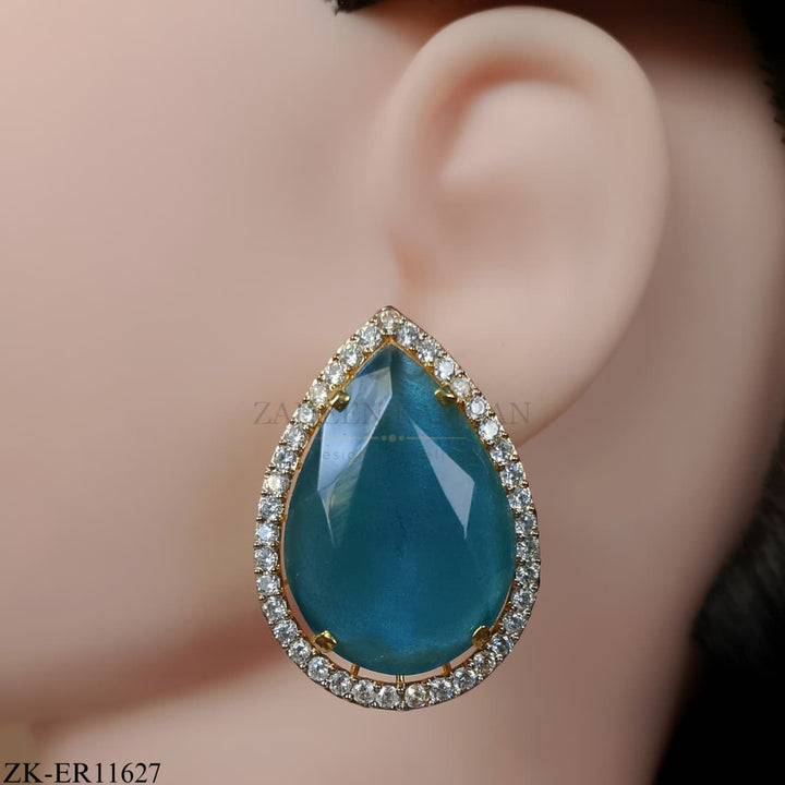 Handcrafted 22k gold plated earrings adorned with sapphire and zircons.