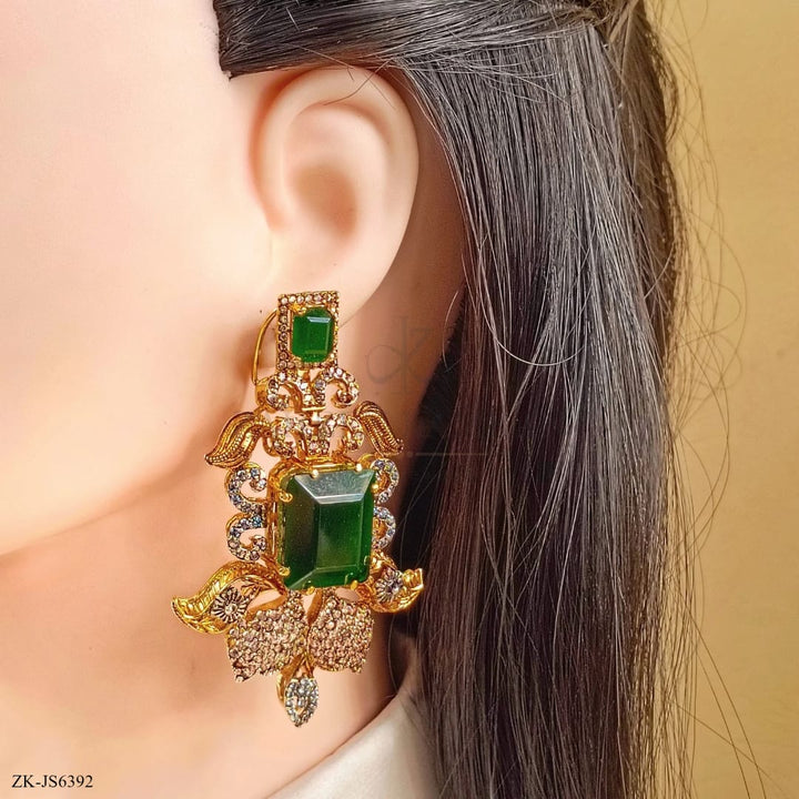 Handcrafted 22k gold plated mala alongside earrings studded with emerald, pearls, smoky and coffee stones.
