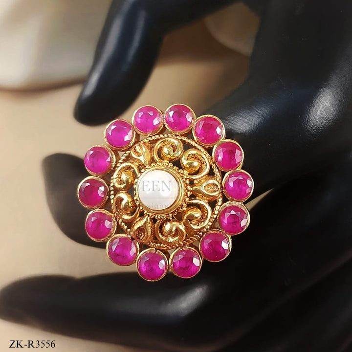 Handcrafted 22k gold plated ring studded with pink zirconia and pearl.