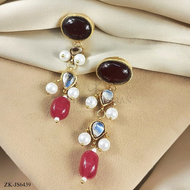 Handcrafted 22k gold plated choker alongside earrings studded with garnet, kundan and pearls.