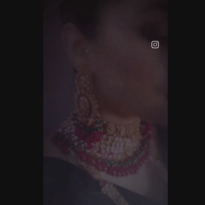 Handcrafted 22k gold plated mala adorned with ruby and smoky stones.