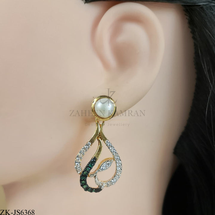 Handcrafted 22k gold plated mala alongside earrings studded with multi stones.