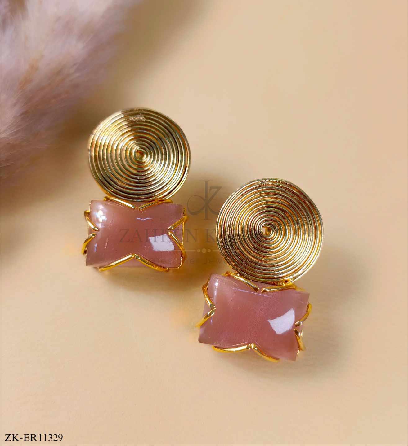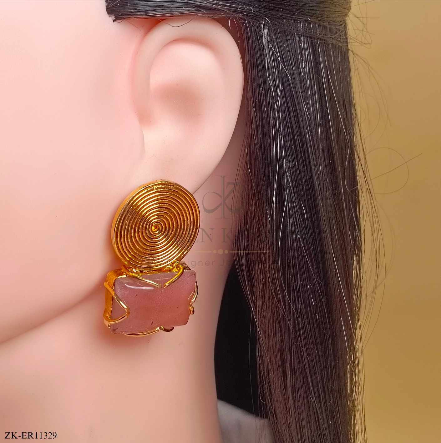 Handcrafted 22k gold plated earrings studded with pink stones.