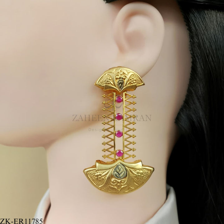 Handcrafted 22k gold plated earrings studded with pink zirconia.