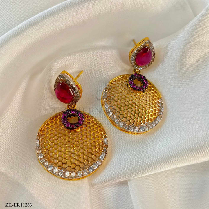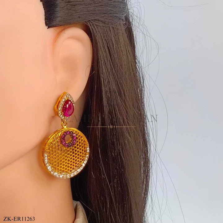 Handcrafted 22k gold plated earrings studded with ruby, amethyst and zircons.