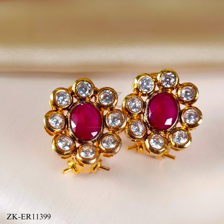 Handcrafted 22k gold plated earrings studded with ruby and zircons.