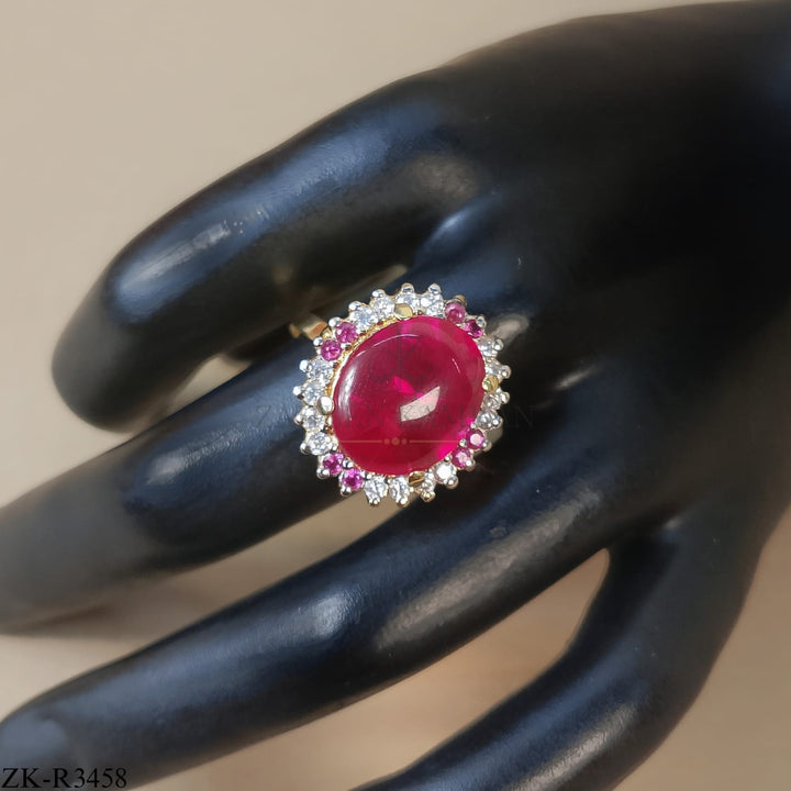 Handcrafted 22k gold plated ring adorned with ruby and zircons.