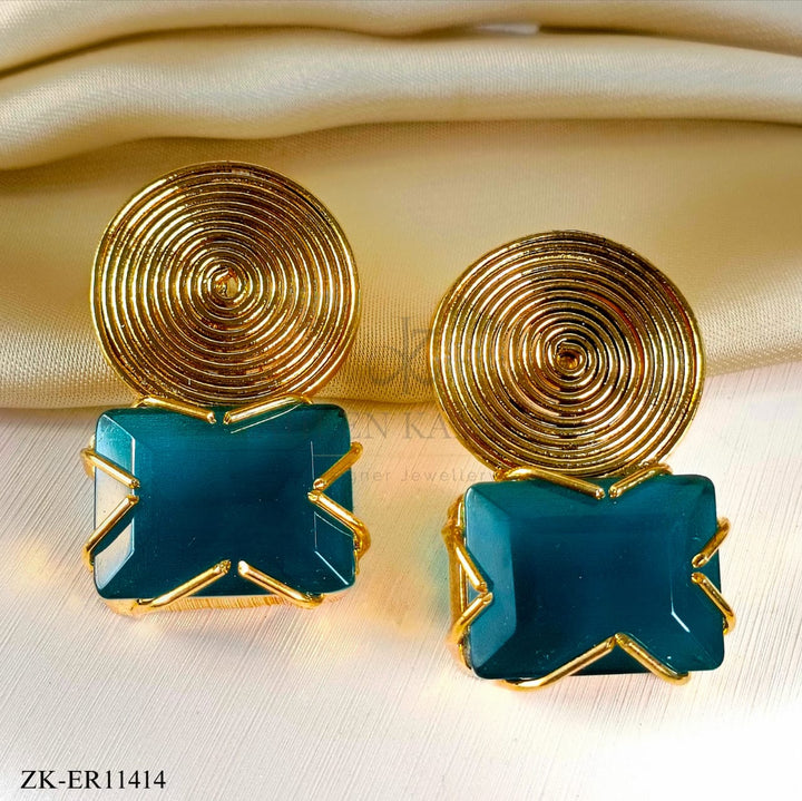 Handcrafted 22k gold plated earrings studded with sapphire.