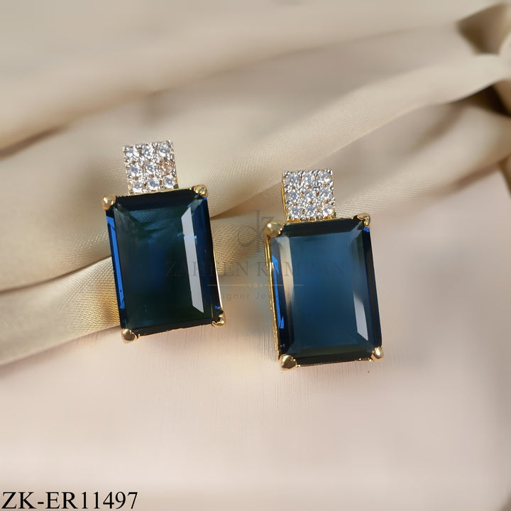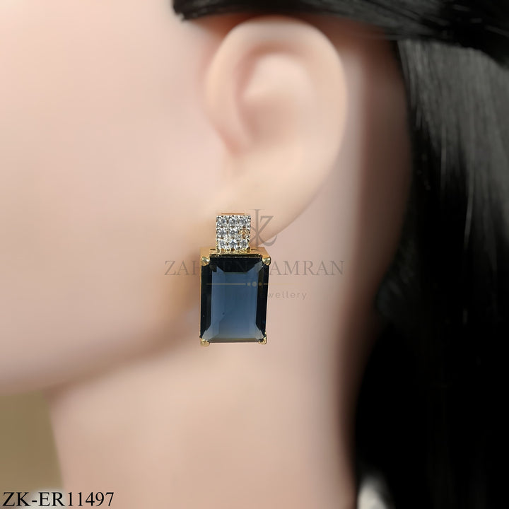 Handcrafted 22k gold plated earrings adorned with sapphire and zircons.