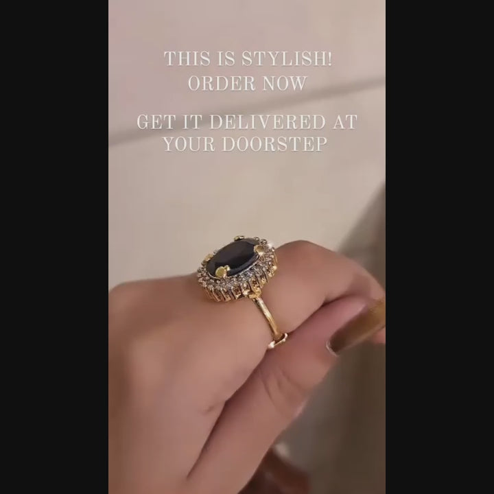Handcrafted 22 k gold plated ring studded with sapphire and zircons.