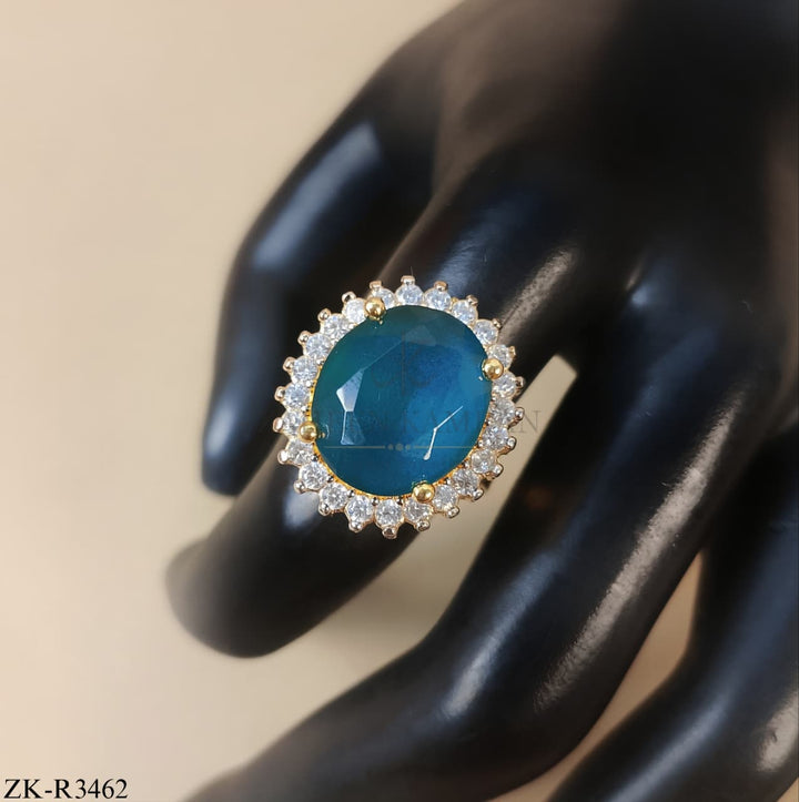 Handcrafted 22k gold plated ring adorned with sapphire and zircons.